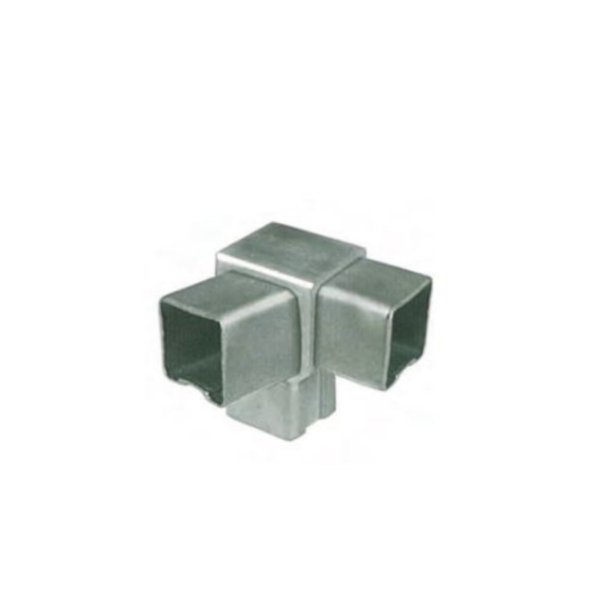 Conector de acero inoxidable Calidad AISI-304 satinado para tubo cuadrado.