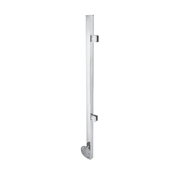 Pilar de acero inoxidable calidad AISI-316, con 2 pinzas y placa lateral.