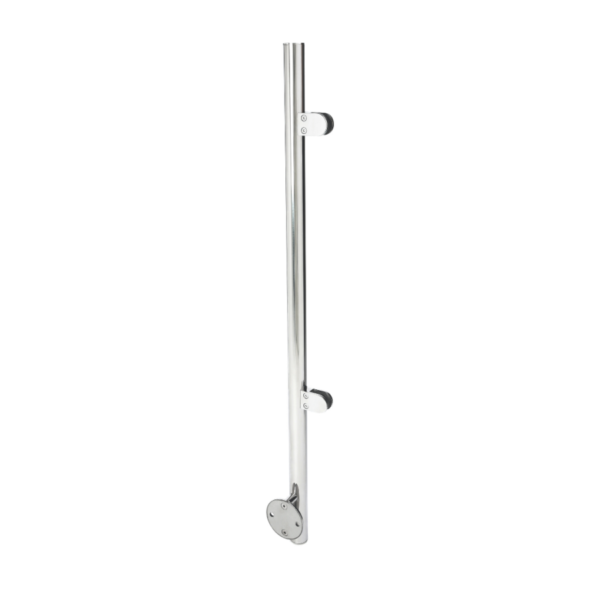 Pilar redondo de acero inoxidable calidad AISI-316, con 2 pinzas y placa lateral.