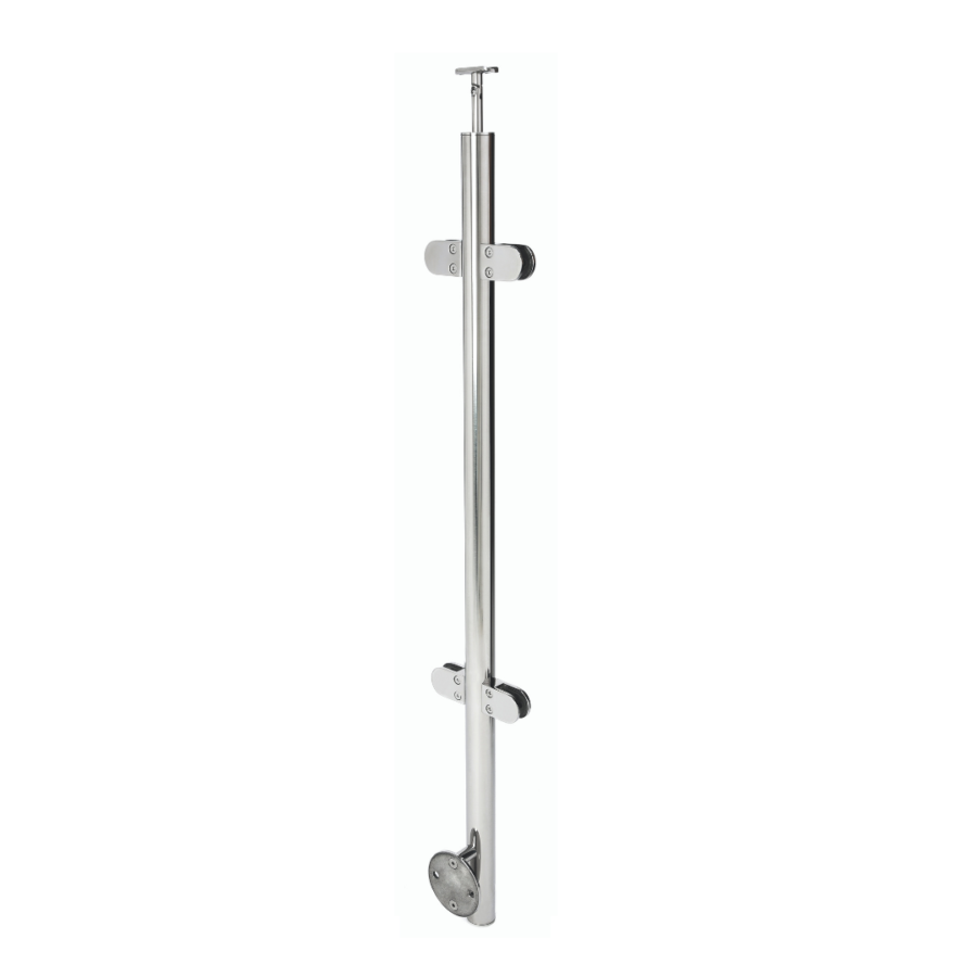 La pinza cuadrada para tubo redondo es un elemento de fijación diseñado para la sujeción segura de vidrio en sistemas de barandillas de acero inoxidable con pilares redondos.